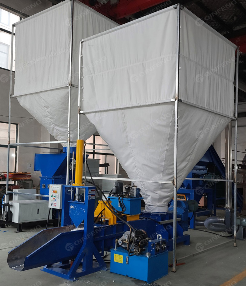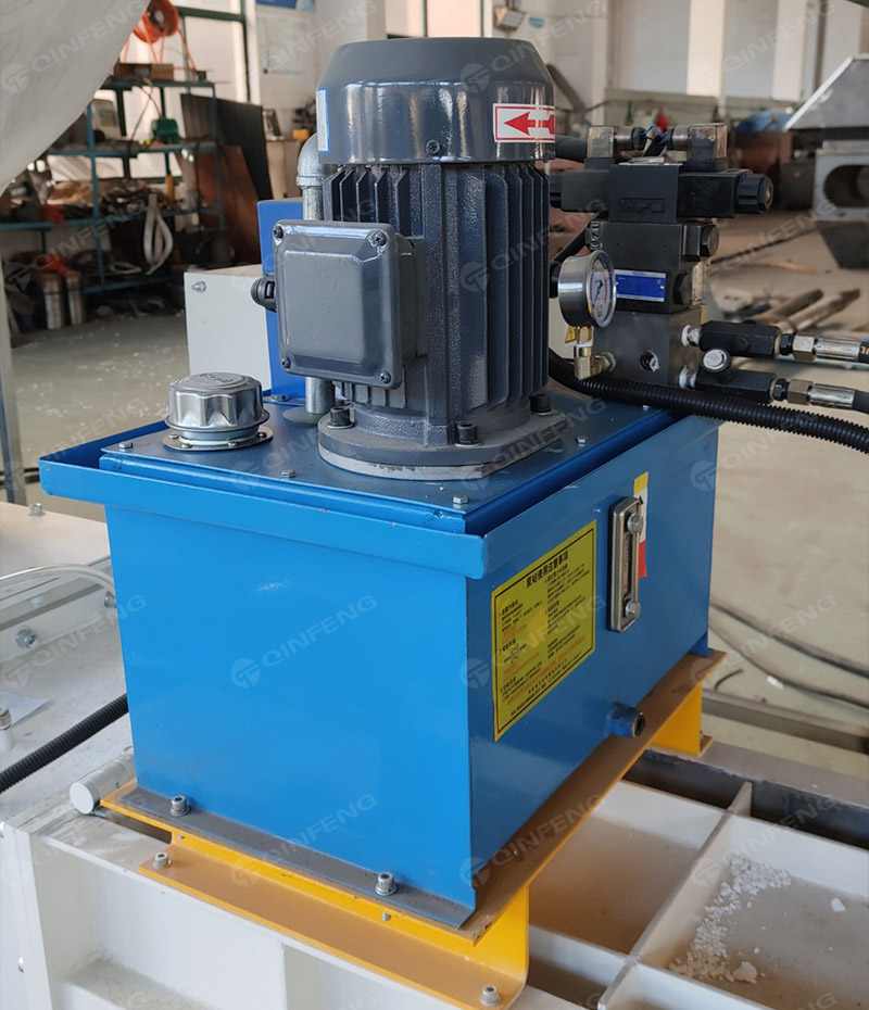 秦風機械正在制造泡沫塑料壓實機來解決這個問題。它可以減小EPS材料的尺寸,壓縮比可達1:30-1:50。成品為EPS塊,密度可達300kg/m3??蛻艨梢暂p松地將 EPS 材料運送至另一個回收處理單元。