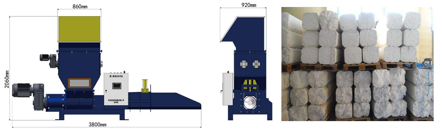 秦風(fēng)機(jī)械的EPS泡沫冷壓機(jī)就是用來(lái)解決這個(gè)問題的,它可以減少EPS泡沫塑料材料的大小,壓縮比可以達(dá)到1:30-1: 50。壓縮的成品是EPS泡沫塑料塊,其密度可達(dá)250kg/m3,很容易把EPS泡沫塑料材料處理成另一種回收處理形態(tài)。