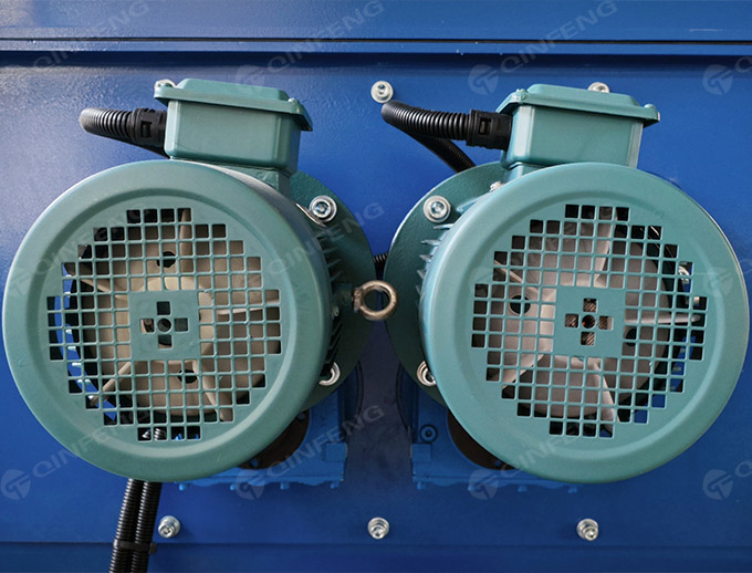 CF-NHM400型號的熱熔機(jī)采用四軸破碎刀片、雙排平行的刀片軸對稱地固定在刀片上,刀片在雙軸刀片軸上錯位排列,各軸上的刀片通過計算的方法均勻地布置在同一方向。每一軸上的第一個刀片和最后一個刀片都成90度角。當(dāng)雙軸破碎刀片開始工作時,兩個平行的刀片軸以不同的旋轉(zhuǎn)方向進(jìn)行旋轉(zhuǎn),形成一個波浪的控制,這樣材料就可以恒定的速度向下移動,在經(jīng)過切割刀片的切割后,會變成更小的塊狀。EPS熱熔機(jī)里的四軸破碎刀片可以把EPS料變成更小體積的塊,然后通過濾網(wǎng)。這些不能通過濾網(wǎng)再次被破碎的料會最終通過濾網(wǎng)過濾掉。該材料將由高速旋轉(zhuǎn)螺桿推送到加熱筒。主機(jī)的螺桿可以輸送、加熱料,使其達(dá)到熱熔狀態(tài),然后擠出并通過模具冷卻得到規(guī)則型的方塊,更加便于貯存和運(yùn)輸。